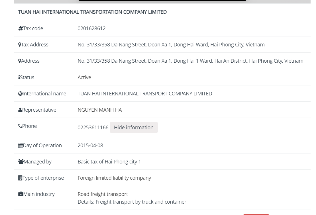 TUAN HAI INTERNATIONAL TRANSPORT COMPANY LIMITED