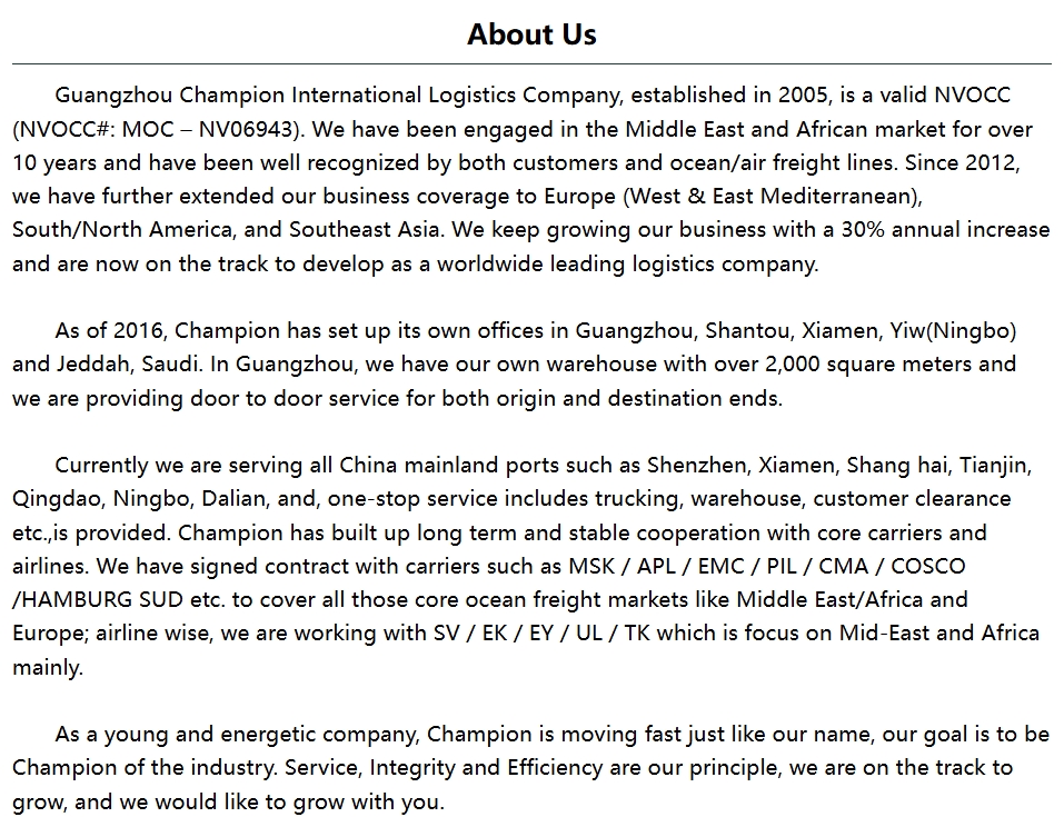 Guangzhou Champion International Logstcis LTD